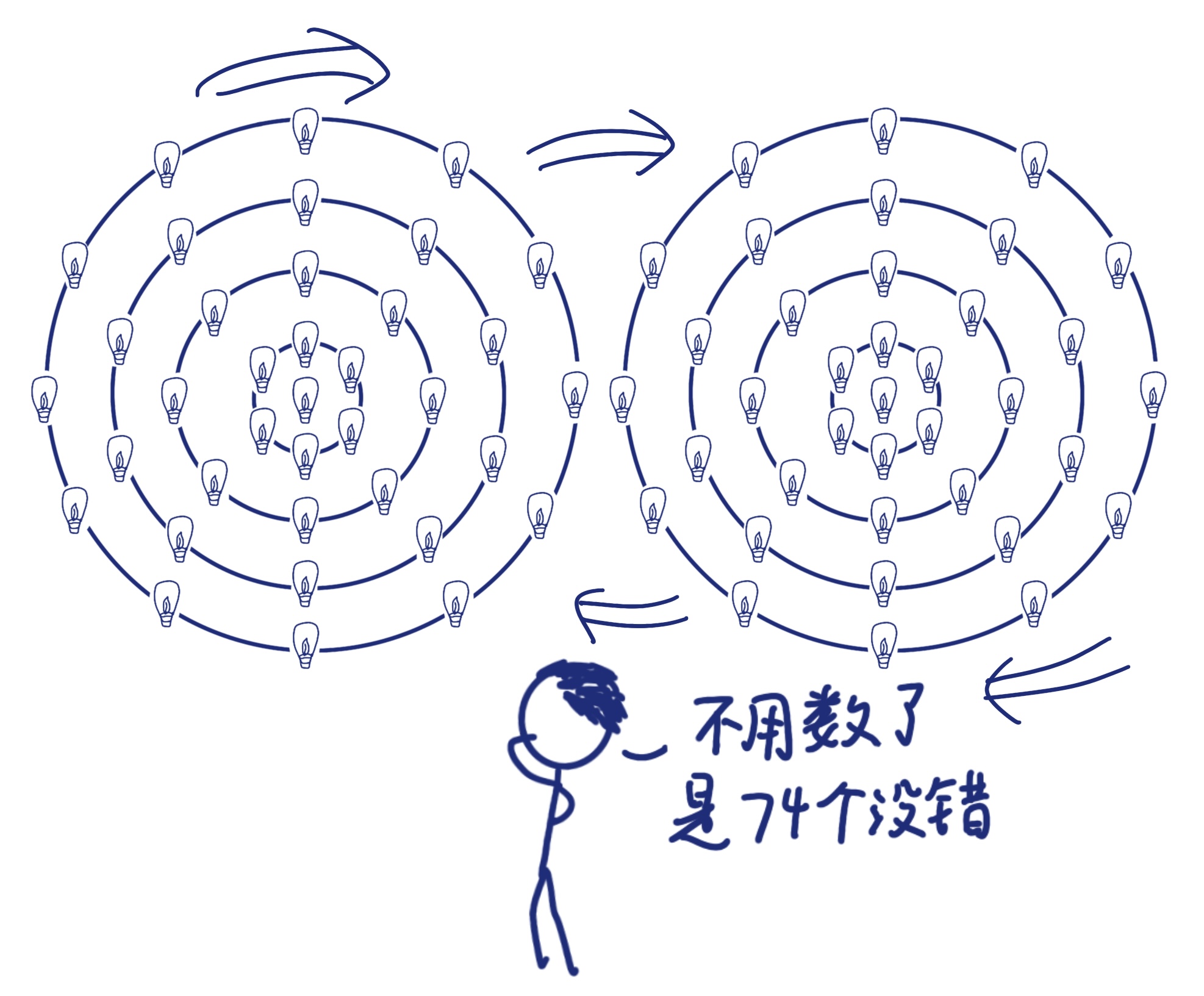 通过仪器测量每个灯泡受到的光强,进而推算出灯泡在未来短时间内的运动距离和方向。 就这样,他一步步地计算每个灯泡的运动情况,一点点地挪动每个灯泡,徒手把这两个模拟星系在近距离交汇下的演化情况推了出来。